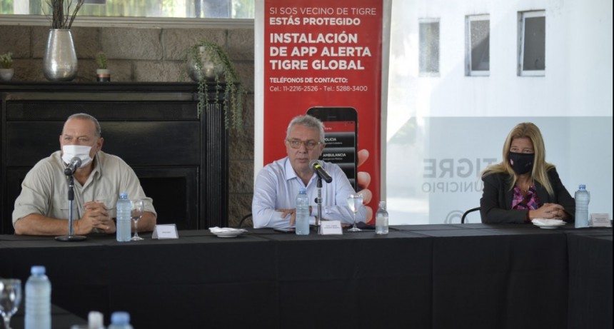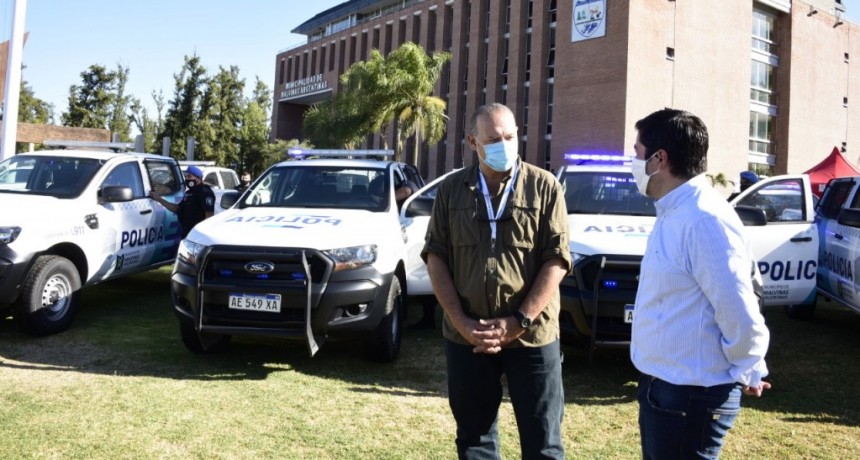 El gobernador Leandro Zdero junto al ministro de Seguridad de la provincia, Hugo Matkovich, al de Infraestructura, Hugo Domínguez, al Jefe de Policía, Fernando Romero y al Subjefe Manuel Silva, en las obras de refacción que se están llevando adelante en la Escuela de Policía, luego de un incendio, ocurrido allí, hace un tiempo atrás