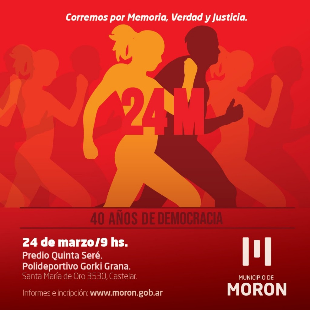 (Morón, 15.Mar.2023 / A1 Noticias) En el marco del Día Nacional de la Memoria, a 47 años del último golpe de Estado cívico militar, el Municipio de Morón llevará adelante una nueva edición de la tradicional Prueba Atlética por la Memoria. La carrera se realizará el 24 de marzo y tendrá como punto de partida el Predio Quinta Seré.