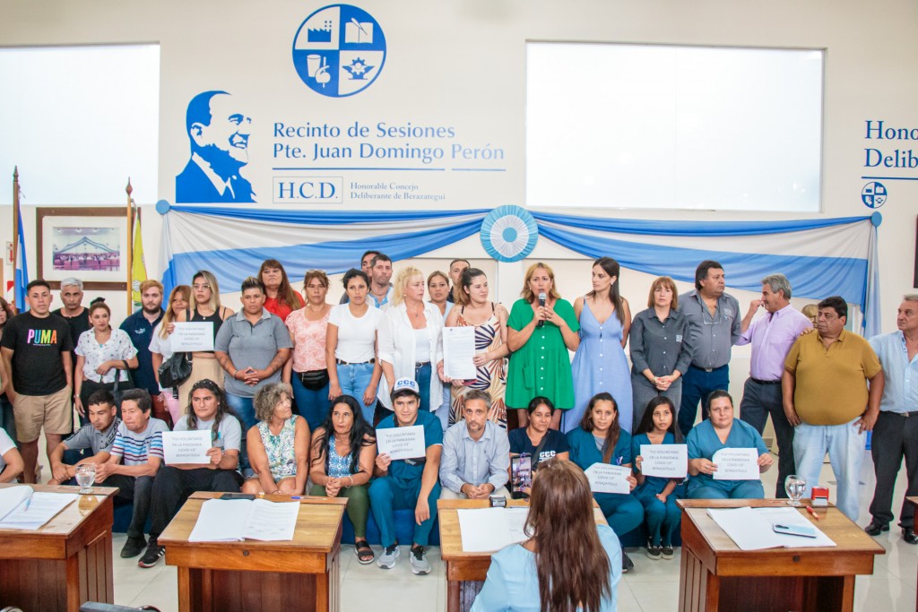 El Honorable Concejo Deliberante de Berazategui, a través de la Ordenanza Municipal Nº 6310, declaró vecinos distinguidos a los voluntarios y voluntarias del distrito que participaron de diferentes acciones en el marco de la pandemia de COVID-19