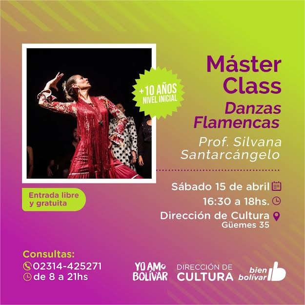 La Dirección de Cultura, encabezada por Jorge Fernández, ofrece una nueva Máster Class de Danzas Flamencas, a cargo de la profesora Silvana Santarcángelo