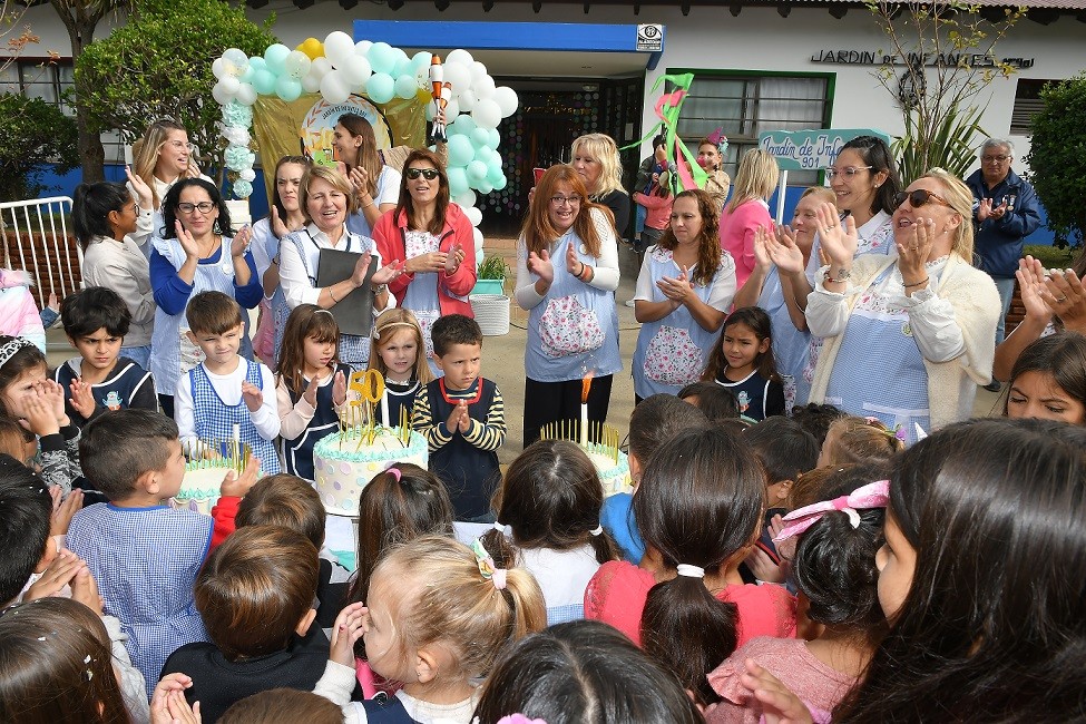 La celebración contó también con las palabras de la directora de la institución, Betiana Haure y del inspector jefe Regional de Educación, Claudio Martini quien destacó que “hoy nos toca como Estado Municipal, Provincial y Nacional pensar una educación para el futuro, para todos, que cobije a las primeras infancias y sobre todo pensar con esperanza que una sociedad distinta y mejor es posible”.
