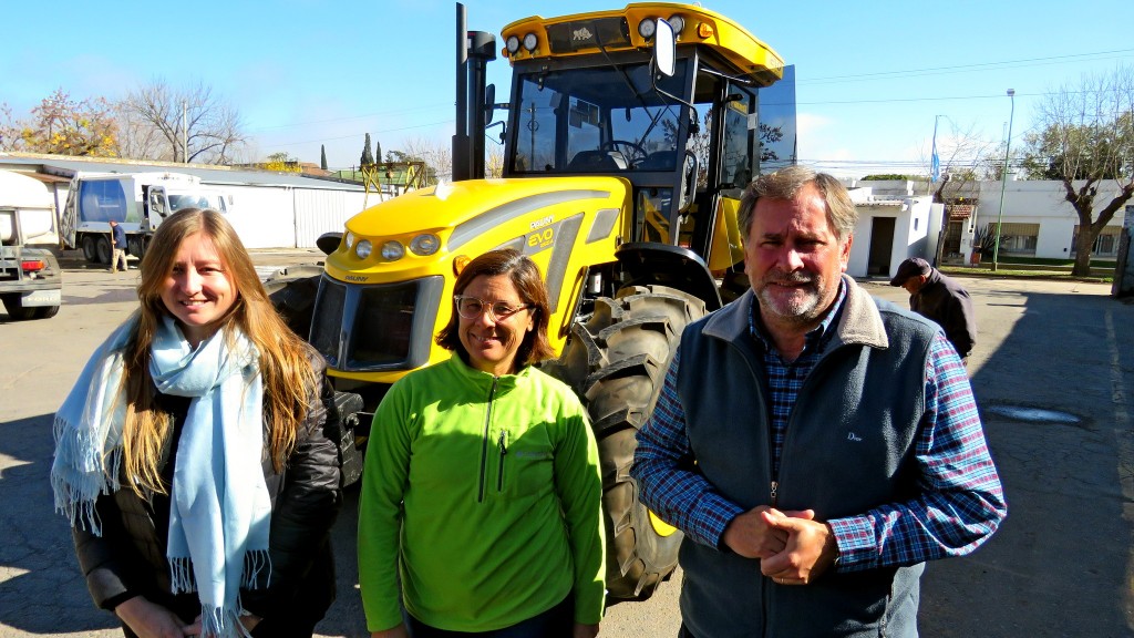 En la recepción del nuevo tractor, el Intendente estuvo acompañado por la Secretaria de Obras Públicas, Martina Manfredi, y su par de Producción, Analía Castro.