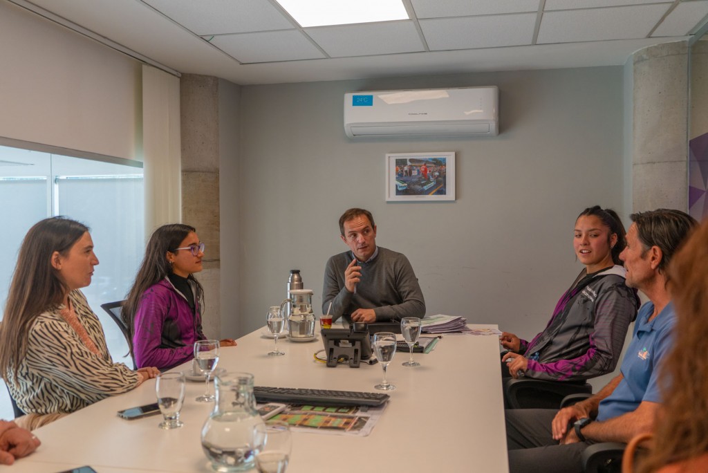Las dos jóvenes campanenses estuvieron acompañadas por su entrenador, Diego Marquine, quien también participó de la reunión con el jefe comunal, al igual que la secretaria de Inclusión, Educación y Cultura, Elisa Abella, y el Director de Deportes, Matías Lugo.