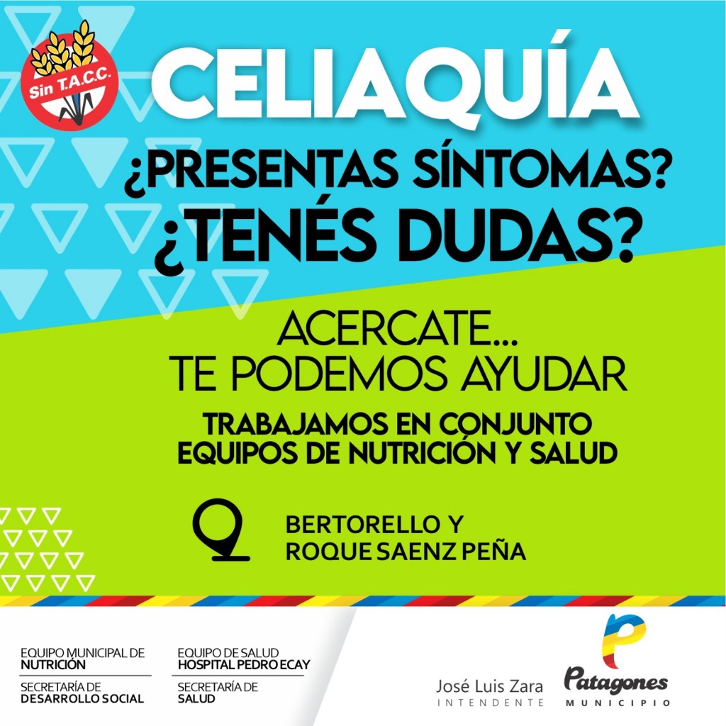 La Secretaría de Desarrollo Social, a través del área de Nutrición y en conjunto con la Secretaría de Salud, pone a disposición de la comunidad la realización gratuita de los estudios correspondientes para detectar la enfermedad celíaca