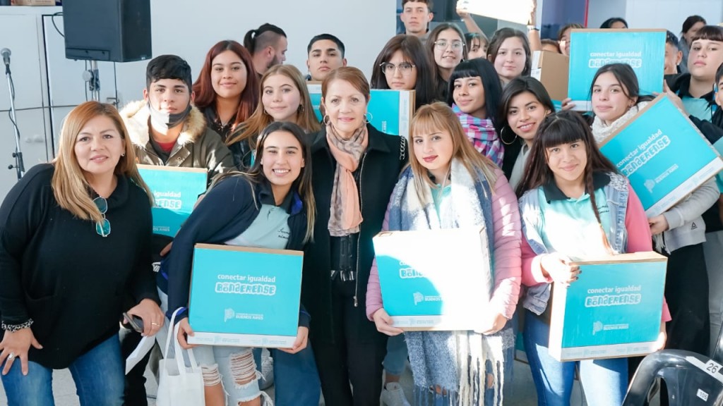 La intendenta, Blanca Cantero encabezó un acto de entrega de 108 netbooks a estudiantes de sexto año de las escuelas secundarias número 4, 6 y 11. La ceremonia se llevó a cabo en la Secundaria Nº 4 del Paraje Las Latas, Ruta 16 y Chivilcoy, de Presidente Perón