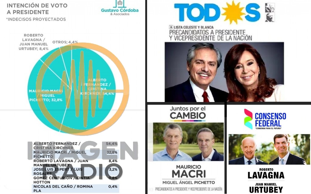 A quince días de las PASO, comienzan a difundirse encuestas que confirmarían el resultado del 11 de agosto. La fórmula del Frente de Todos se encamina a ganar en primera vuelta, según el sondeo de Gustavo Córdoba & Asociados. Los números serían similares a los conseguidos por Cristina Fernández de Kirchner en 2011, ya que Alberto Fernández lograría el 54,4%, mientras que Mauricio Macri sólo el 32,8%
