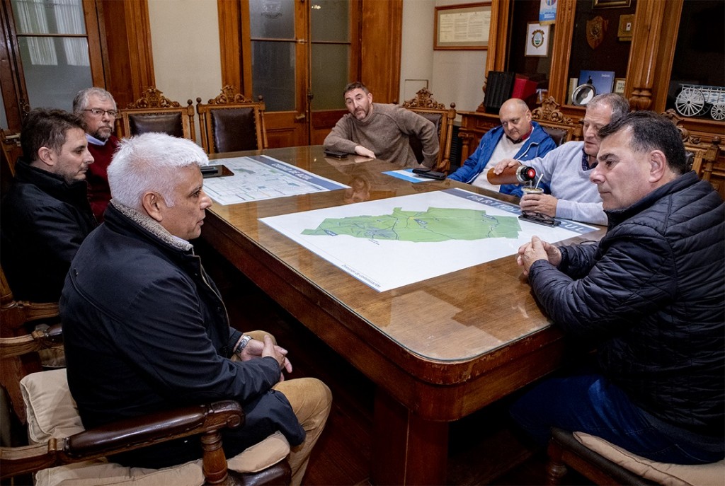 Se trató de una primera reunión de trabajo para avanzar en esta iniciativa. En este contexto, el mandatario municipal estuvo acompañado por el secretario y el subsecretario de Obras y Servicios Públicos -Guillermo Giordano y Marcos Turón, respectivamente- y el director de Regularización Dominial Ángel Olaechea.