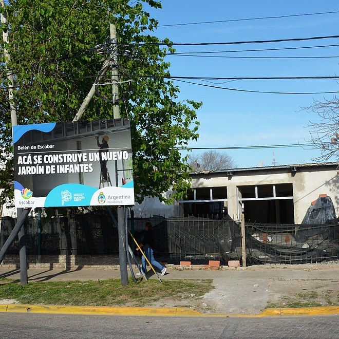 Por su parte, en Travi y Carlos Pellegrini (Belén de Escobar) también se construye un jardín de infantes que encuentra en el 50% de su ejecución y generará 200 nuevas vacantes. El edificio contará con 640 metros cuadrados cubiertos, cuatro aulas con sanitarios incorporados en cada una, un salón de usos múltiples, cocina, sanitarios para docentes, para personas con discapacidad y dependencias administrativas. Además, en el exterior habrá un sector para juegos y para realizar prácticas pedagógicas. Actualmente se realiza la colocación de la carpintería, la finalización de revoques y trabajos de instalación eléctrica.