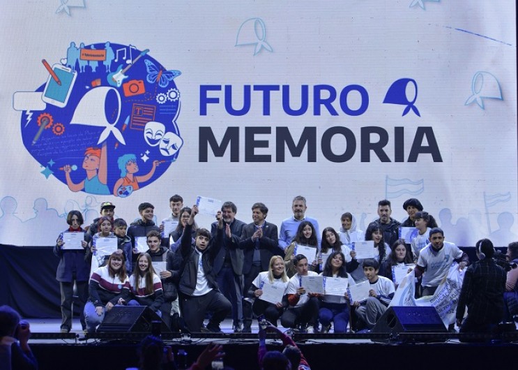 (CABA, 18.Ago.2023 / A1 Noticias) El gobernador Axel Kicillof encabezó el acto de entrega de certificados a jóvenes que participaron de la tercera edición del programa “Futuro Memoria”, una iniciativa que promueve la creación de producciones artísticas que visibilicen las luchas por la Memoria, la Verdad y la Justicia. Fue en el Microestadio de Tecnópolis junto a la referente de Madres de Plaza de Mayo Línea Fundadora, Taty Almeida y más de 3.500 chicos y chicas de diferentes puntos de la provincia. Estuvieron presentes también el director General de Cultura y Educación, Alberto Sileoni; los subsecretarios de Derechos Humanos, Matías Moreno; y de Industrias Creativas e Innovación Cultural, Cristian Scarpetta; y la directora provincial de Juventudes, Ayelén López.
