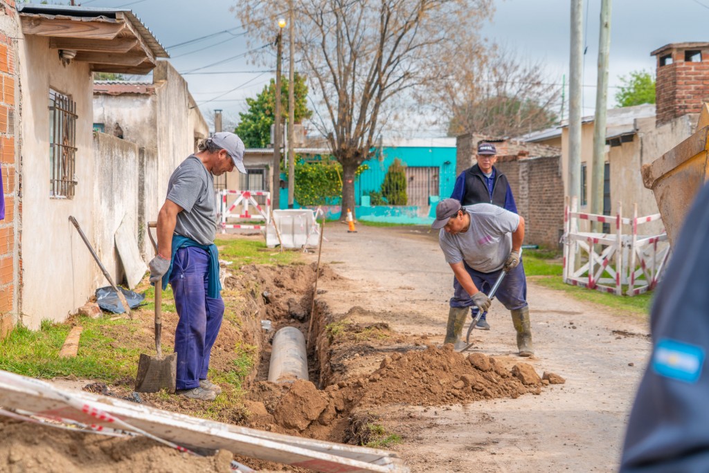 El Municipio reemplaza luminarias colgantes obsoletas por columnas sobre la vereda en las calles San Martín y Rawson, desde colectora hasta Savio. También se mejora la luz de la plaza del lugar y se instalan cañerías para mejorar el escurrimiento del agua de lluvia