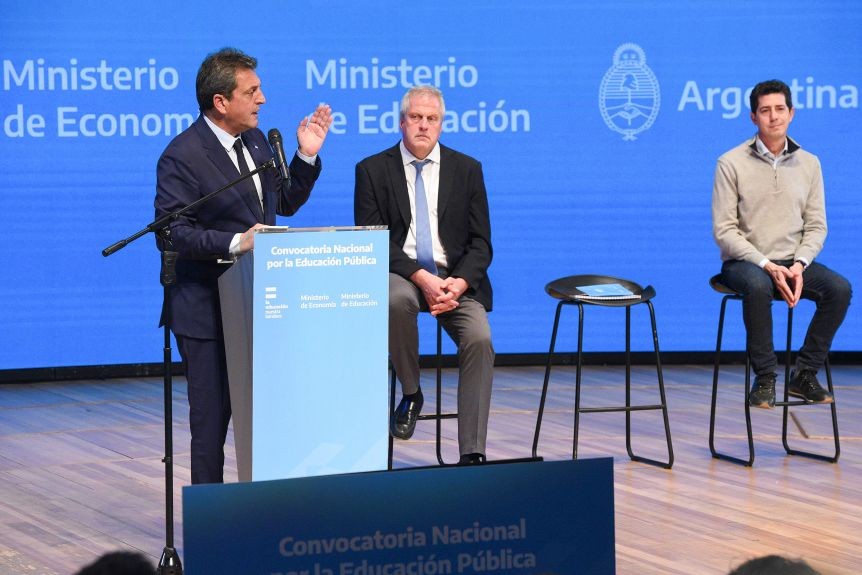 “Creemos que la mejor inversión que puede hacer una sociedad es aumentar la inversión en el sistema educativo”, sostuvo Massa durante el acto que se realizó en el CCK y en el que estuvieron presentes el ministro del Interior, Eduardo “Wado” De Pedro, gobernadores y vices, rectoras y rectores de universidades, legisladores nacionales, ministras y ministros provinciales y representantes de gremios docentes y nodocentes, entre otros.
