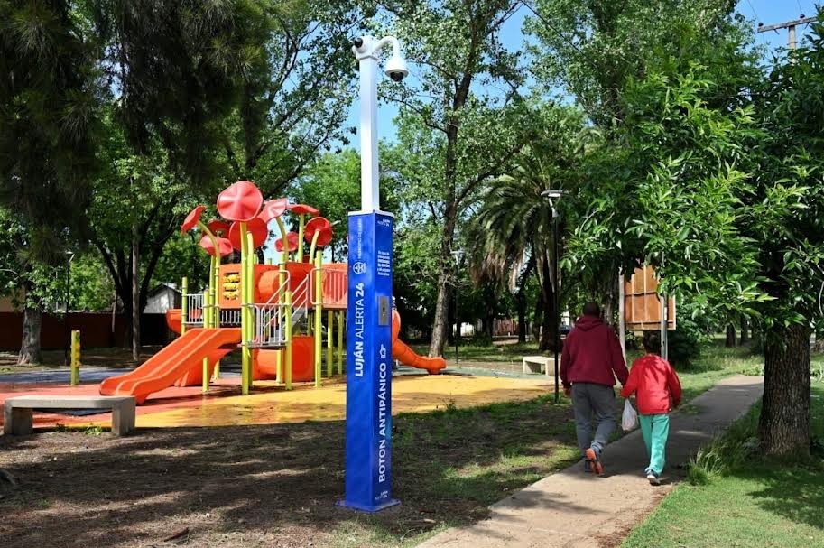 (Luján, 30.Oct.2023 / A1 Noticias) Se trata de equipamientos de última tecnología que cuentan con una cámara tipo domo de 360° y otras tres cámaras fijas orientadas, además de un botón de emergencia y un intercomunicador con el Centro Operativo de Monitoreo.