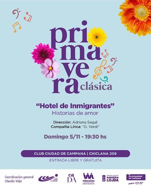 (Campana, 01.Nov.2023 / A1 Noticias) Con una “Noche Lírica” de entrada libre y gratuita, este domingo 5 de noviembre a las 19.30 cierra el ciclo “Primavera Clásica 2023” en el Salón Cultural del Club Ciudad de Campana (Chiclana 209).