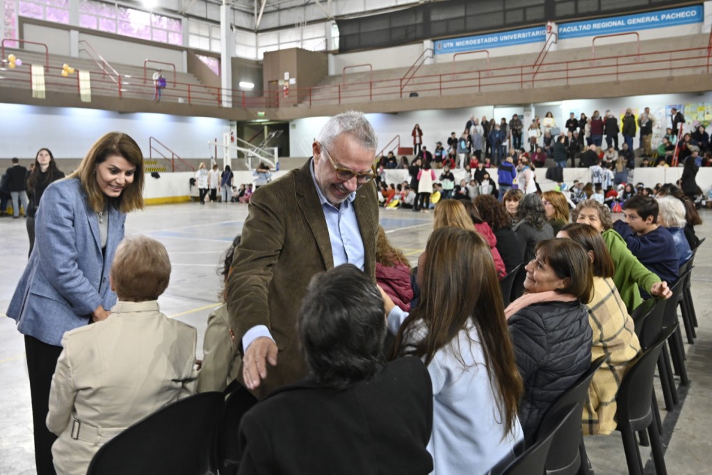 El intendente presenció el encuentro en el microestadio de la UTN, que contó con obras musicales realizadas por los estudiantes y desfiles de antiguos miembros de la comunidad educativa. El jefe comunal recordó a Rosa María Casariego y Alfonsina Juana Burga Bevilacqua, docentes desaparecidas en la última dictadura y, además, ratificó el compromiso del Municipio con la educación pública