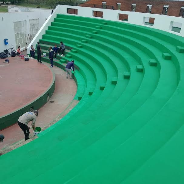 El trabajo articulado entre vecinos y vecinas dependientes del Programa Nacional Potenciar Trabajo y el Municipio de Presidente Perón, permite poner en valor las instalaciones del Anfiteatro Municipal “Homero Manzi”