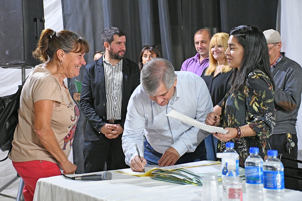 En primer lugar, el Jefe Comunal expresó: “Quiero destacar al equipo de la Dirección de Casa de Tierras por su labor para que esto sea posible y felicitar a los vecinos que hoy firman el título de su propiedad para que pronto puedan obtener sus escrituras”.