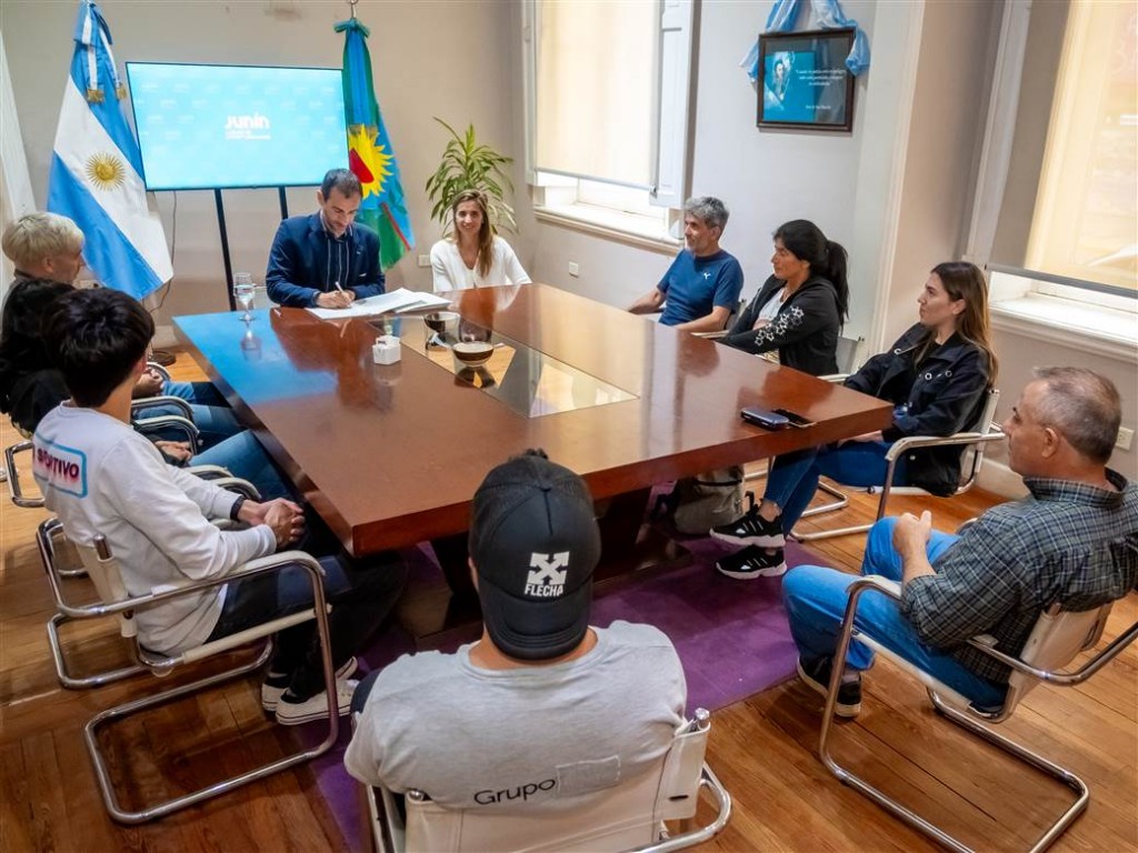 En el despacho del palacio municipal, el Intendente Pablo Petrecca, junto a la secretaria de Gobierno, Agustina de Miguel y el titular de la Agencia Municipal de Tierra y Vivienda, recibió a un grupo de familias adjudicatarias del Proyectar IV, para celebrar la firma de los correspondientes boletos compra venta, trámite muy importante para la posesión definitiva de los lotes