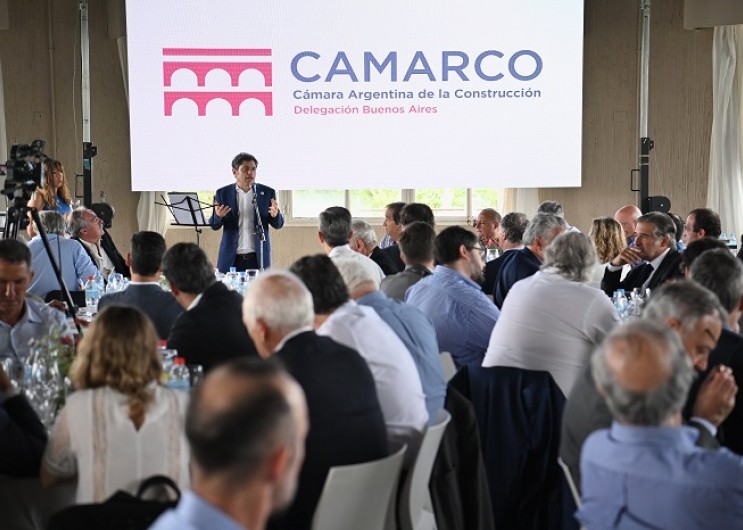 (La Plata,05.Dic.2023 / A1 Noticias) “Tenemos la vocación y el compromiso para continuar con el plan de infraestructura que iniciamos hace cuatro años y le ha transformado la vida a millones de bonaerenses”, afirmó el gobernador Axel Kicillof al participar este martes de un encuentro para celebrar el Día de la Construcción organizado por la Cámara Argentina de la Construcción (CAMARCO). Fue en el Salón Oval del Club de Regatas La Plata, en Ensenada, junto al titular de la delegación provincial de CAMARCO, Lucas Luciano.
