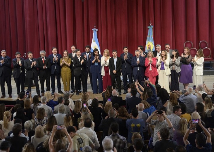Desde la Sala Ginastera del Teatro Argentino, Kicillof destacó que “hemos venido para reconstruir la provincia de Buenos Aires y esta transformación ya ha sido asumida como una necesidad de los y las bonaerenses”. “Llegamos hace cuatro años a una provincia que era tierra arrasada y logramos ponerla de pie: nuestro pueblo expresó en las urnas su voluntad de dar continuidad a un proyecto de ampliación de derechos, integración y recuperación del orgullo de ser bonaerenses”, indicó.