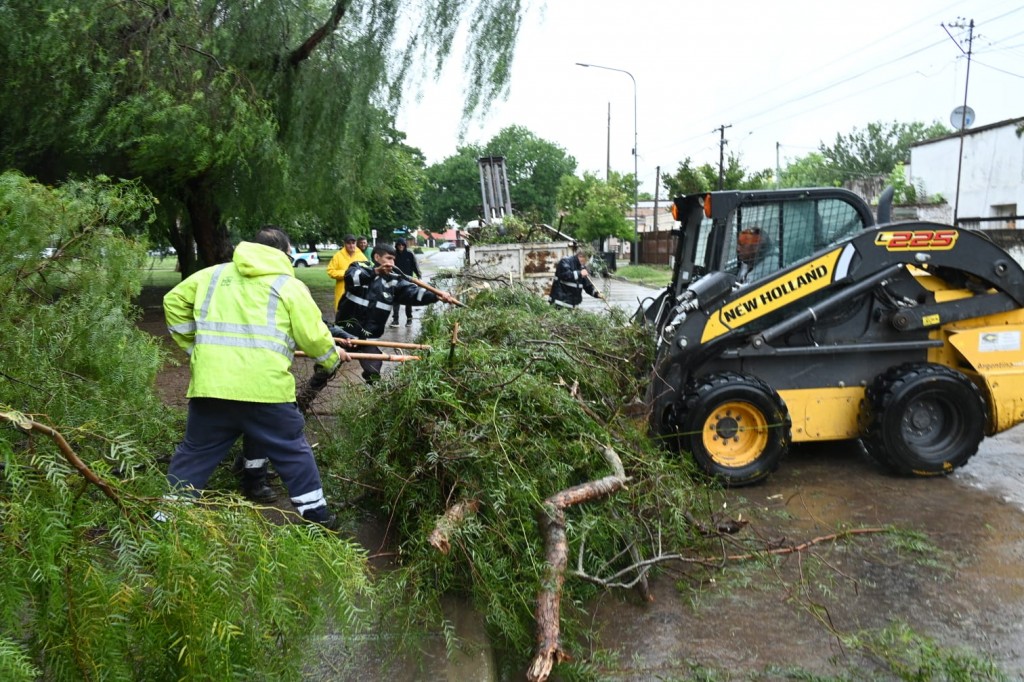 También se trabaja en el Cementerio Municipal, donde los vientos derribaron más de 10 árboles de gran porte -causando daños y destrozos en tumbas y bóvedas-. En este sentido, ya comenzaron las tareas de reducción de troncos y limpieza de ramas.