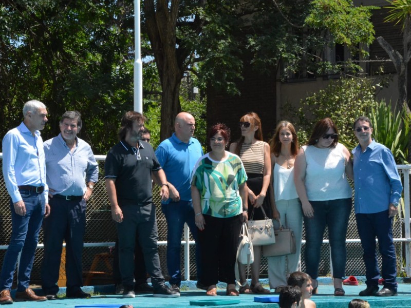El intendente Fabián Cagliardi visitó, junto el director General de Cultura y Educación de la provincia de Buenos Aires, Alberto Sileoni, las instalaciones del Hogar Social, ubicado en Avenida Montevideo y 3, donde chicas y chicos de las sedes de la EP 9 y EP 19, acompañados por sus respectivos docentes, realizaron actividades acuáticas y deportivas en el marco de las Escuelas Abiertas de Verano