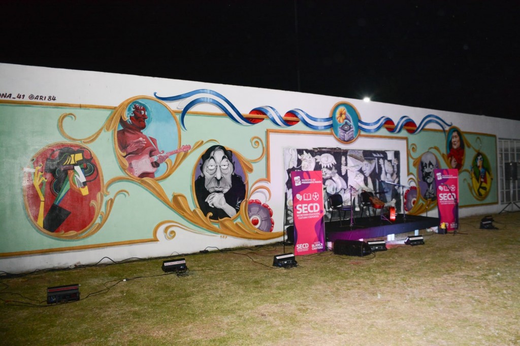 (Presidente Perón, 26.Ene.2024 / A1 Noticias) “Vamos a seguir promoviendo nuestros valores artísticos, a pesar que desde el nuevo gobierno del presidente Milei se intenta desfinanciar las producciones culturales y continuar profundizando su política del ajuste, tarifazos, quita de subsidios al transporte y la energía, paralización de la obra pública, entre otras medidas que perjudican a la mayoría de los argentinos”, agregó la intendente Blanca Cantero, quien encabezó un acto de presentación de un mural que contiene a músicos y cantautores nacionales con una amplia y reconocida trayectoria artística.