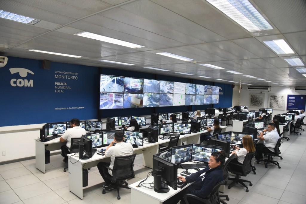 El COM de San Martín cuenta con más de 1.200 cámaras de seguridad monitoreadas las 24 horas y en contacto permanente con los patrulleros, el 911, las Postas de Seguridad, los botones antipánico y las Paradas Seguras y Tótems colocados en lugares estratégicos, en el marco del Sistema Integral de Prevención Ciudadana.
