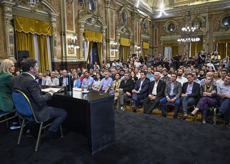 El gobernador de la provincia de Buenos Aires, Axel Kicillof, encabezó un acto con intendentes e intendentas bonaerenses, donde renovó los reclamos ante los incumplimientos del Gobierno nacional y anunció nuevas medidas para fortalecer las finanzas municipales