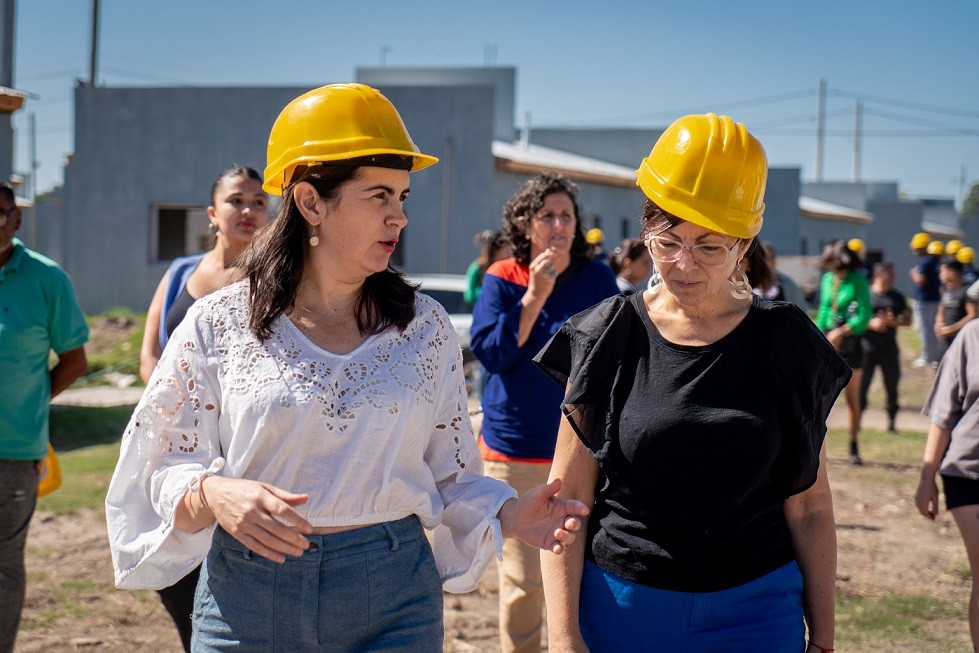 La intendenta de Moreno, Mariel Fernández, y la ministra de Hábitat y Desarrollo Urbano, Silvina Batakis, recorrieron la obra de 116 viviendas en el barrio La Perla de la localidad de Moreno Norte