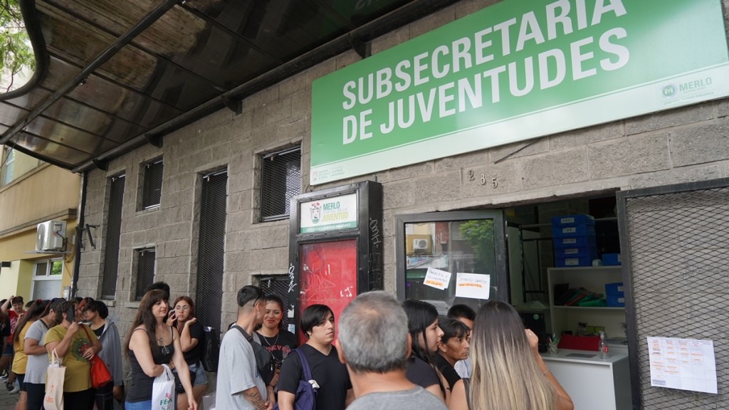 Cientos de jóvenes merlenses se acercaron a la sede de Merlo Centro de la Subsecretaría de Juventudes con el fin de conseguir una vacante para los cursos que ofrece durante todo el año de manera gratuita