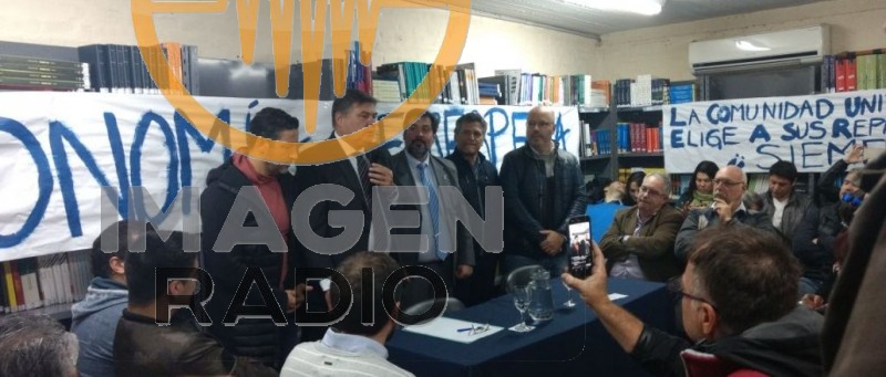 Concluida la Asamblea Universitaria desarrollada en la Sede de la calle Jujuy, se hicieron presentes el intendente Gustavo Menéndez, acompañado de su Secretario de Gobierno, Gustavo Soos y Pablo Rendich y Raúl Díaz, presidente y vice del HCD, respectivamente.