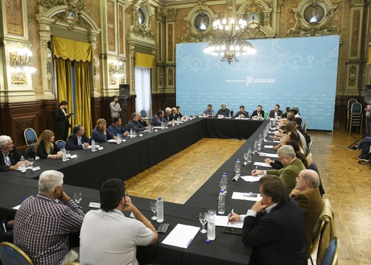 El gobernador de la provincia de Buenos Aires, Axel Kicillof, recibió en Casa de Gobierno a representantes de la Mesa Agropecuaria, junto a los ministros de Desarrollo Agrario, Javier Rodríguez; y de Economía, Pablo López; el presidente del Banco Provincia, Juan Cuattromo; y el director ejecutivo de ARBA, Cristian Girard
