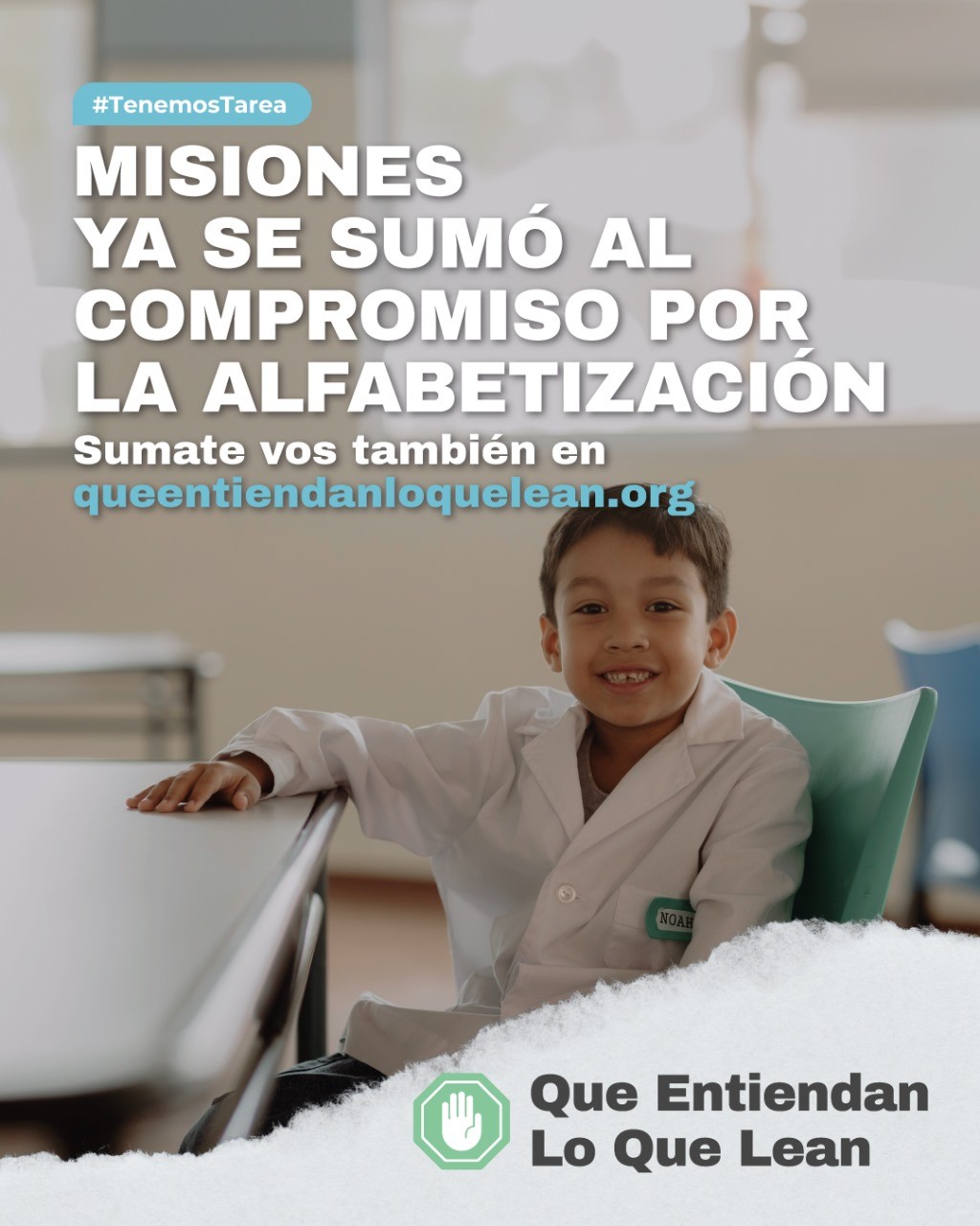 (Misiones, 26.Abr.2024 / A1 Noticias) Misiones ha dado otro paso en su compromiso por mejorar la educación y la comprensión lectora de sus estudiantes. Se ha unido a la Campaña Nacional por la Alfabetización de la ONG Argentinos por la Educación, bajo el lema #QueEntiendanLoQueLean, un movimiento plural e independiente que busca transformar el sistema educativo del país. La iniciativa busca fortalecer la alfabetización inicial en todas las instituciones educativas, tanto públicas como privadas, promoviendo estrategias y recursos para mejorar la comprensión lectora desde los primeros años de escolaridad.