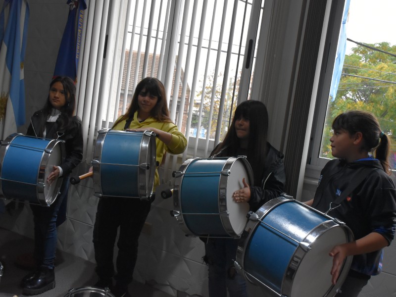 De la entrega, que tuvo lugar en el despacho de Intendencia, estuvieron presentes el secretario de Gobierno Matías Slezack; la directora de Cultura Eva Piermaría; el coordinador y fundador de la Orquesta Escuela, Juan Carlos Herrero, junto a Beatriz “Tete” Grasso, presidenta de la Asociación Civil de la Orquesta Escuela; asistentes de coordinación, docentes y alumnas de la Escuela N9 e integrantes de la murga.