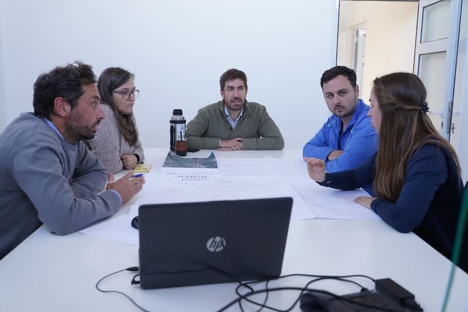 El jefe comunal Dr. Juan Ustarroz se reunió con representantes de la empresa y funcionarios provinciales en la Secretaría de obra municipal. Se trata de la planificación para el inicio de la concreción de la red de agua en la localidad de Agote