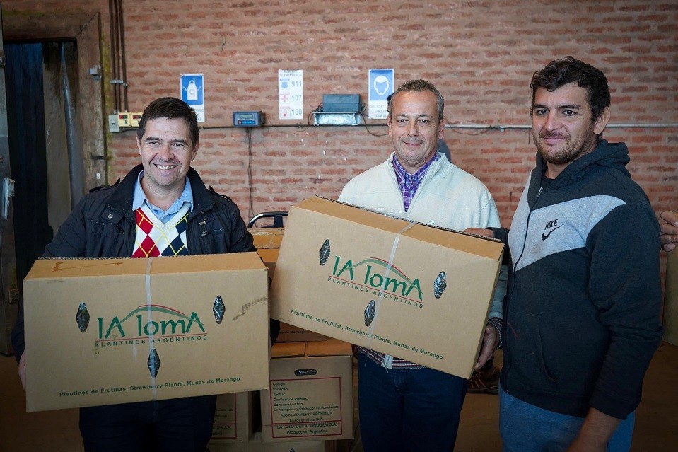 El ministro de la Producción y el Desarrollo Económico Sostenible, Hernán Halavacs, junto al secretario de Agricultura Oscar Pascual, entregaron en la Chacra 137 de Resistencia, más de 411.000 plantines de frutillas, destinados a 130 productores y siete escuelas, de un total de 30 localidades