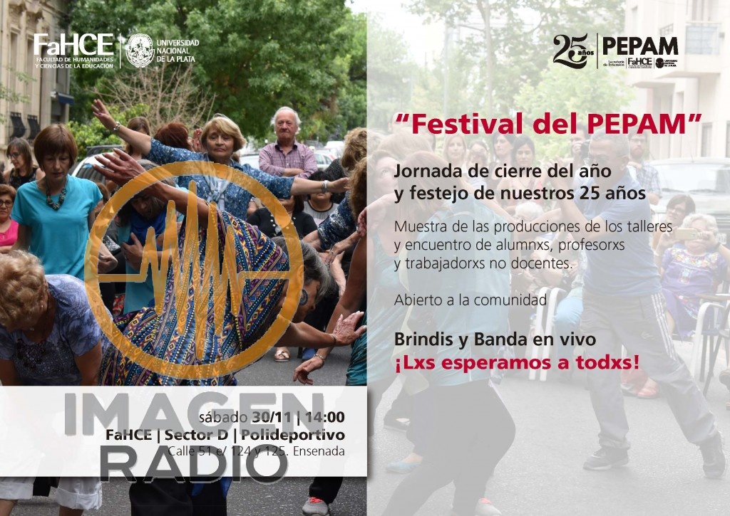 El PEPAM, programa implementado desde la Facultad de Humanidades y Ciencias de la Educación de la Universidad Nacional de la Plata (UNLP) festejará sus 25 años de vida con un festival gratuito y abierto a la comunidad el sábado 30 de noviembre a las 14 horas en el Polideportivo ubicado en calle 51 entre 124 y 125 de Ensenada