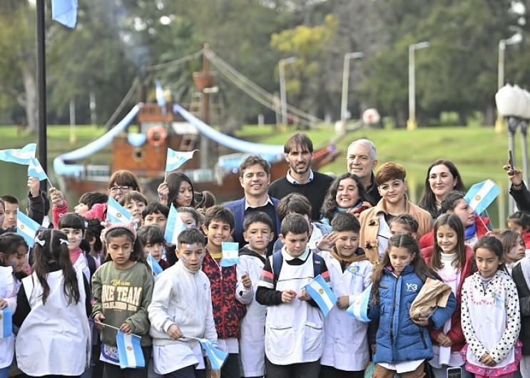 El gobernador de la provincia de Buenos Aires, Axel Kicillof, encabezó el acto de promesa de lealtad a la bandera nacional por parte de alumnos y alumnas de escuelas primarias públicas y privadas bonaerenses. Fue en la República de los Niños de La Plata, junto al intendente local, Julio Alak; el director general de Cultura y Educación, Alberto Sileoni; y la presidenta del Instituto Cultural, Florencia Saintout