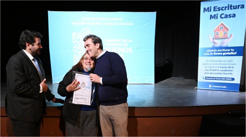 El acto tuvo lugar en el Teatro Municipal Trinidad Guevara, donde se entregaron 149 escrituras gratuitas enmarcadas dentro de la Ley 10.830 de escrituración social -confeccionadas a través de la Escribanía General de Gobierno de la Provincia de Buenos Aires-.