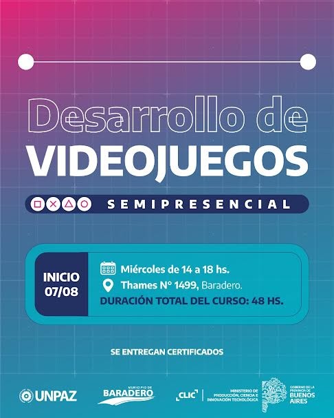 La Red CLIC del Programa “Centros Locales de Innovación y Cultura” del Ministerio de Producción, Ciencia e Innovación Tecnológica de la provincia de Buenos Aires en conjunto con la Universidad Nacional de José Clemente Paz invita a la comunidad al curso gratuito “Desarrollo de Videojuegos”