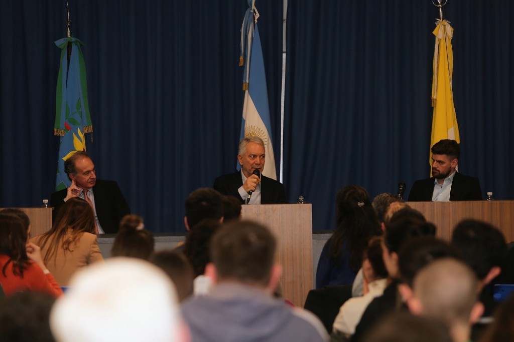 El encuentro tuvo lugar en el salón auditorio de la Facultad de Derecho y Ciencias Políticas de la Universidad Católica de La Plata (UCALP), donde el mandatario de la capital bonaerense habló sobre la realidad latinoamericana y mundial, los desafíos de la política argentina y los objetivos a nivel local.