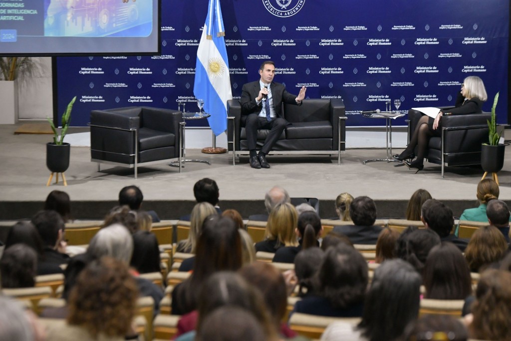 (CABA, 12.Sep.2024 / A1 Noticias) La Secretaría de Trabajo, Empleo y Seguridad Social del Ministerio de Capital Humano llevó a cabo la primera jornada de Inteligencia Artificial para dialogar sobre la actualidad y los desafíos de esta tecnología en el mundo laboral. El secretario Julio Cordero estuvo a cargo del cierre y resaltó: “Es importante generar estos espacios de intercambio partiendo siempre de la base de que el trabajo dignifica al ser humano, por lo tanto la inteligencia artificial tiene que ser una herramienta para el trabajador y no su reemplazo”.
