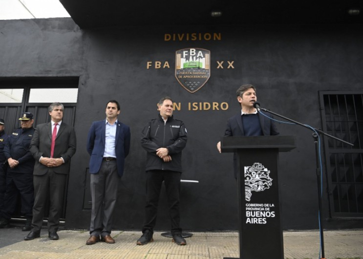 El gobernador de la provincia de Buenos Aires, Axel Kicillof, encabezó la inauguración de las nuevas instalaciones de la Fuerza Barrial de Aproximación (FBA) en San Isidro y puso en funcionamiento 16 patrulleros destinados a comisarías del distrito. Fue en la localidad de Beccar junto al ministro de Seguridad, Javier Alonso, y el intendente local, Ramón Lanús