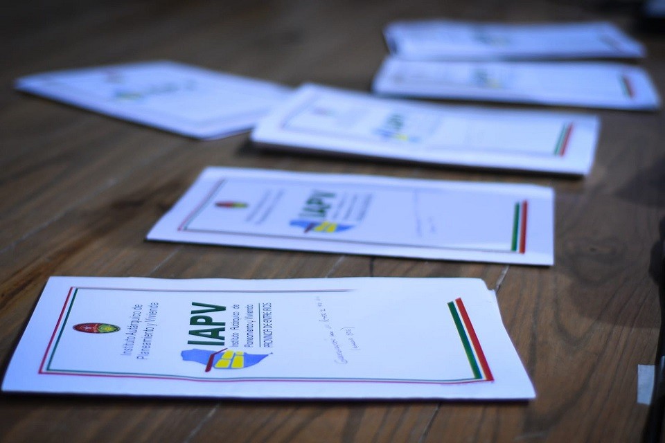 Schönhals dijo que "el gobernador Rogelio Frigerio le ha dado un fuerte impulso a la regularización dominial, para garantizar la seguridad jurídica a los habitantes de las unidades habitacionales construidas por el IAPV en el territorio entrerriano y convertirlos en propietarios de sus viviendas".