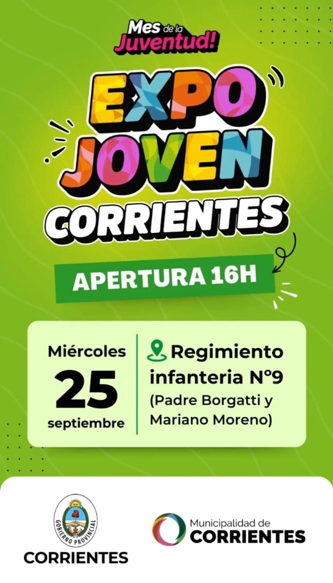 Se lleva adelante la tercera edición de la Expo Joven de la Ciudad de Corrientes, hasta este viernes. El evento de entrada libre y gratuita, tiene lugar en el Ex Regimiento Infantería N°9 de 8 a 18, con ingreso por Padre Borgatti y Mariano Moreno