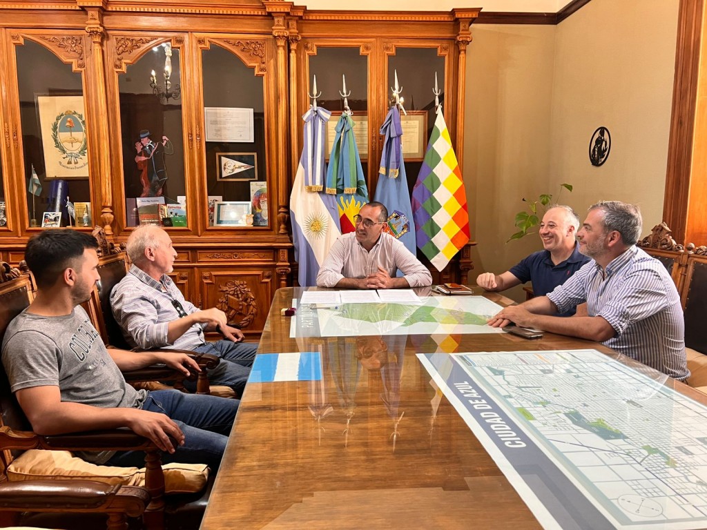 El titular del Departamento Ejecutivo Municipal de Junín, Juan Fiorini, junto a parte del gabinete municipal recibió en su despacho a autoridades de la Federación de Sociedades de Fomento y representantes de distintas comisiones barriales, quienes plantearon diversas cuestiones y reclamos para solucionar de forma conjunta
