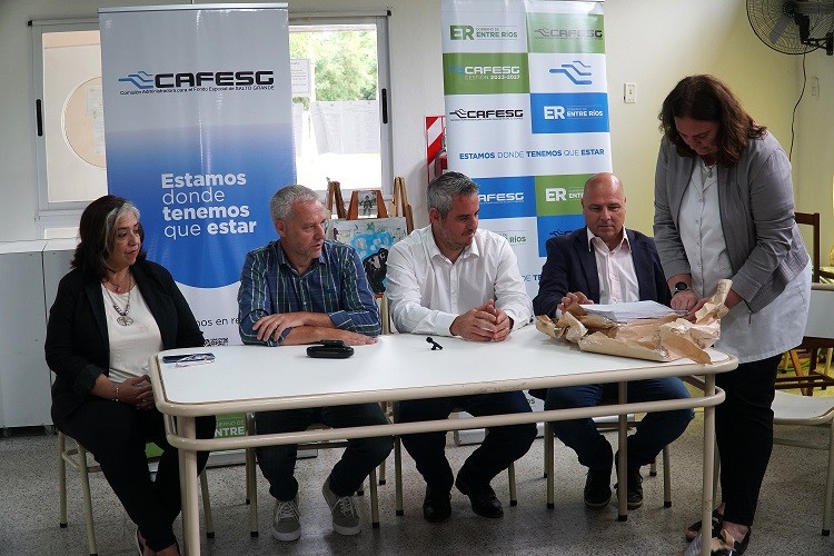 Estuvieron presentes el vocal de la CAFESG (Comisión Administradora para el Fondo Especial de Salto Grande) Pablo Canali, el diputado Mauro Godein, la directora Departamental de Educación Lina Bosch y directoras de escuelas, además de referentes de comunas y municipios.
