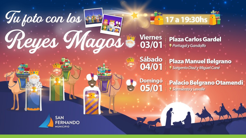 Sus majestades de Oriente, Melchor, Gaspar y Baltasar, regresan para tomarse fotografías de impresión instantánea de 17 a 19:30h el viernes 3 de enero en la Plaza Carlos Gardel (Quintana y Portugal); el sábado 04/01 en la Plaza Manuel Belgrano (Sargento Diaz y Miguel Cané) y el domingo 05/01 en el Palacio Belgrano Otamendi (Sarmiento y Lavalle). Los eventos son libres y gratuitos