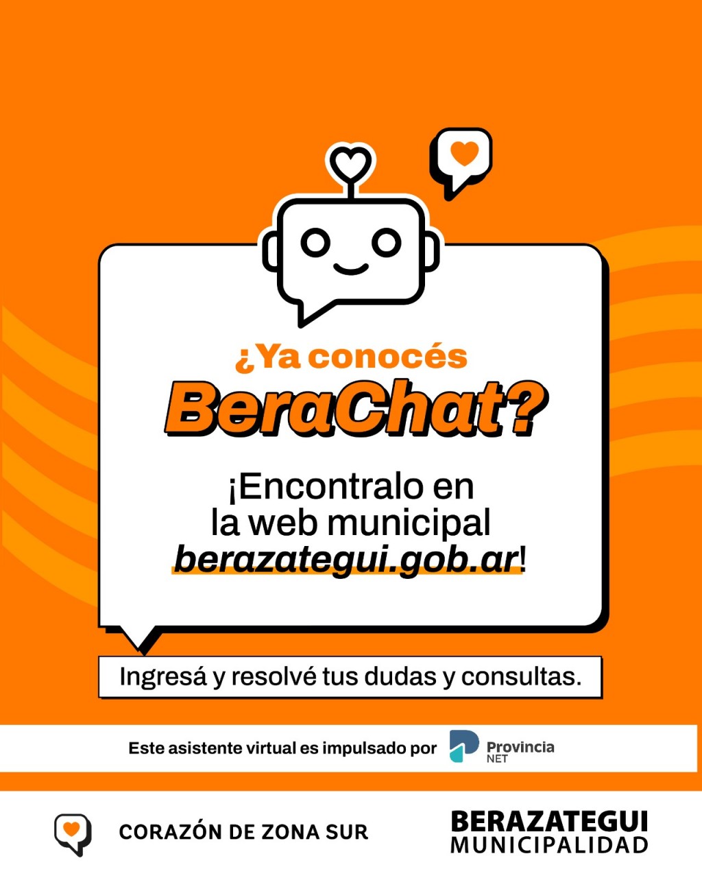 Ya está disponible BeraChat, el asistente virtual de la Municipalidad de Berazategui, en la web Berazategui.gob.ar. Se trata de un desarrollo de Provincia NET pensado para la comunidad