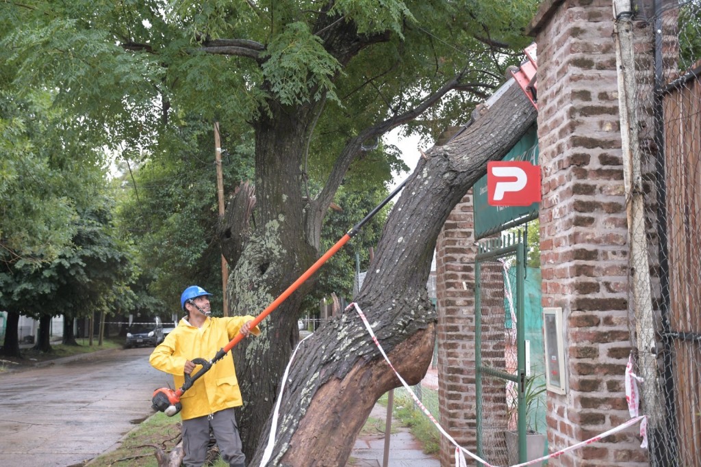 El Municipio continúa con el intenso trabajo en las zonas afectadas por el reciente temporal. El operativo se lleva adelante en conjunto con Defensa Civil, las Unidades de Gestión Comunitaria (UGC) y la Dirección de Arbolado Público
